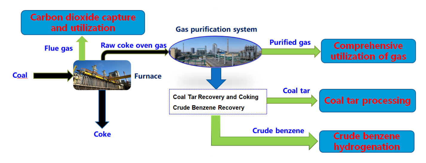 ACRE has developed an integrated industrial chain that leverages cokemaking by-products—tar, crude benzene, and gas—to produce carbon-based new feedstocks, including aromatics, alcohol ethers, and other chemical products.