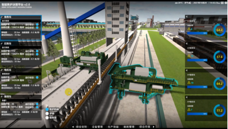 The coke oven's intelligent systems optimize production for greater efficiency with less manning, while built-in upgrade interfaces ensure readiness for a fully unmanned future. Through the integrated operation of the Coke Oven Operation Management System, the Coke Oven Machine-Ground Coordination System, and the Coke Oven Chamber Pressure Regulation System, fully automatic coal charging and coke pushing operations are achieved. The automatic heating and temperature monitoring system facilitates intelligent coke oven thermal management. The application of the Coke Oven Machine Coordination System enables unmanned operation of coke oven machines.