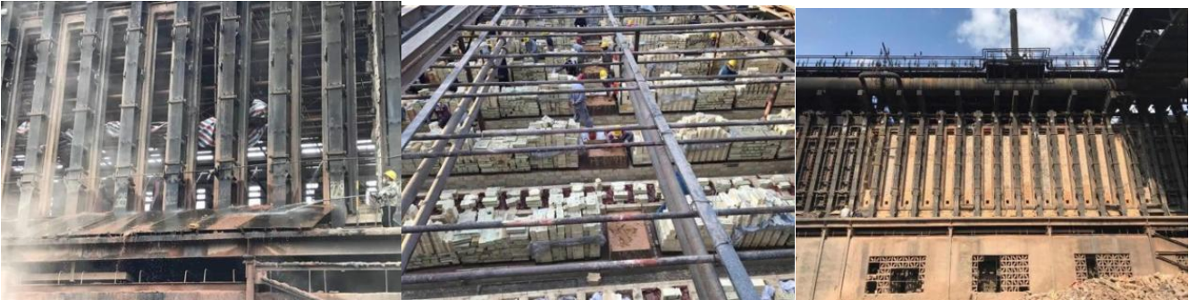 Oven top rebuild is for solving problems such as uneven oven top, gas leakage on oven top, and high ambient temperature on oven top. Jamb brick rebuild is for solving problems such as burning of bracing system, poor operating environment, and fugitive emissions from coke ovens due to leakage and emission at jamb bricks.