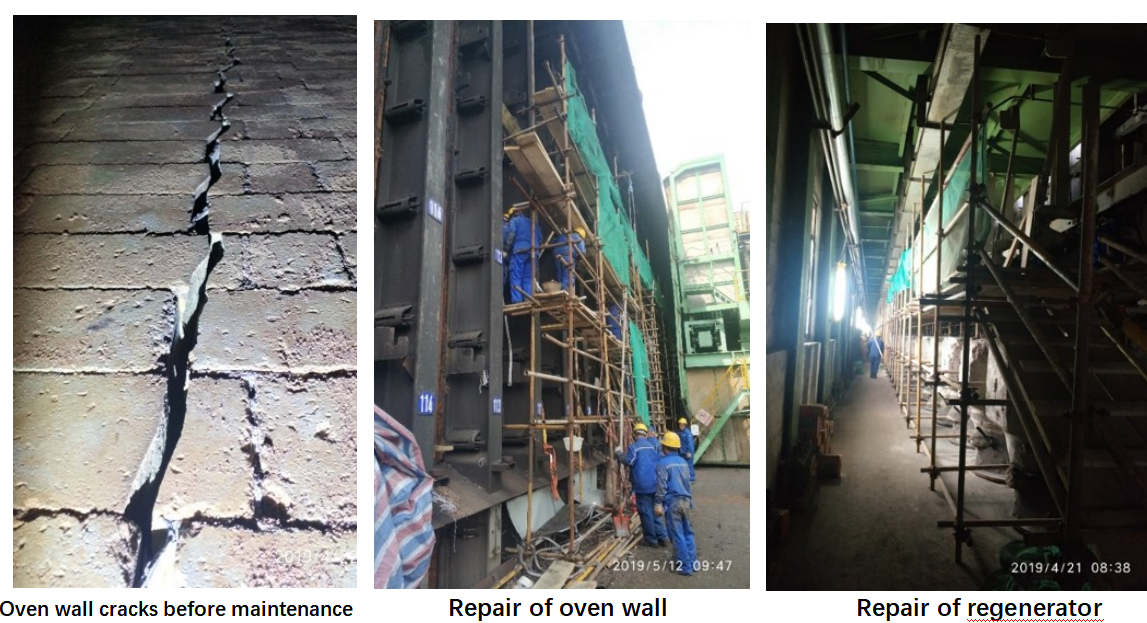 The priority during maintenance is the maintenance of cracks on regenerator and oven wall. Several solutions were given by ACRE for repairing wall cracks ranging from 1-3mm to 30-40mm. Based on actual situation of coke oven, redesign and maintenance for parts of coke oven will be carried out. Equipment of the coke oven will be inspected, replaced, and repaired simultaneously.